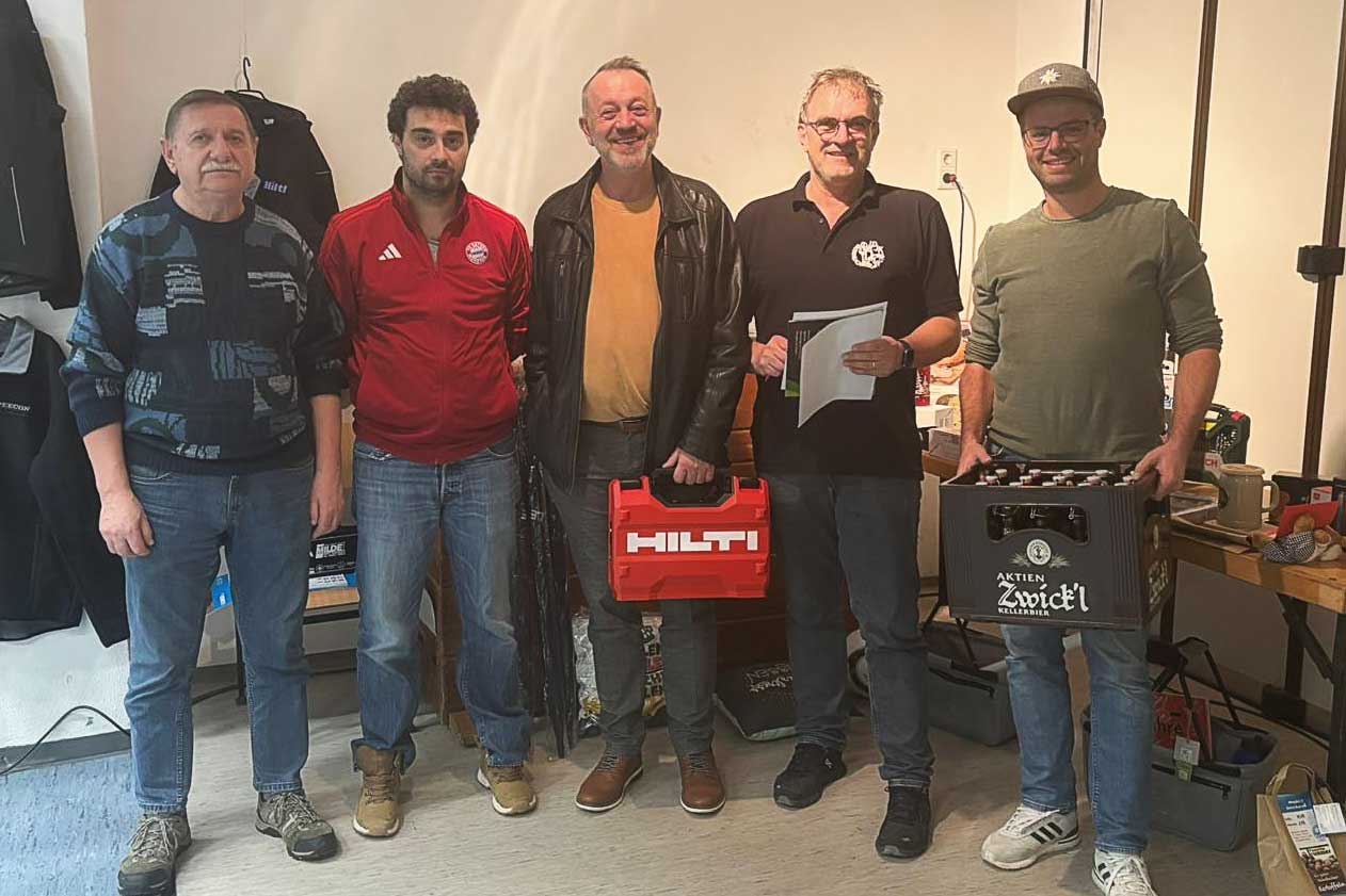 Auf dem Foto zu sehen sind die drei Erstplatzierten sowie der Empfänger des Trostpreises für den letzten Platz. Die DJK Gebenbach gratuliert allen Gewinnern und bedankt sich bei allen Teilnehmern für ihr Kommen.